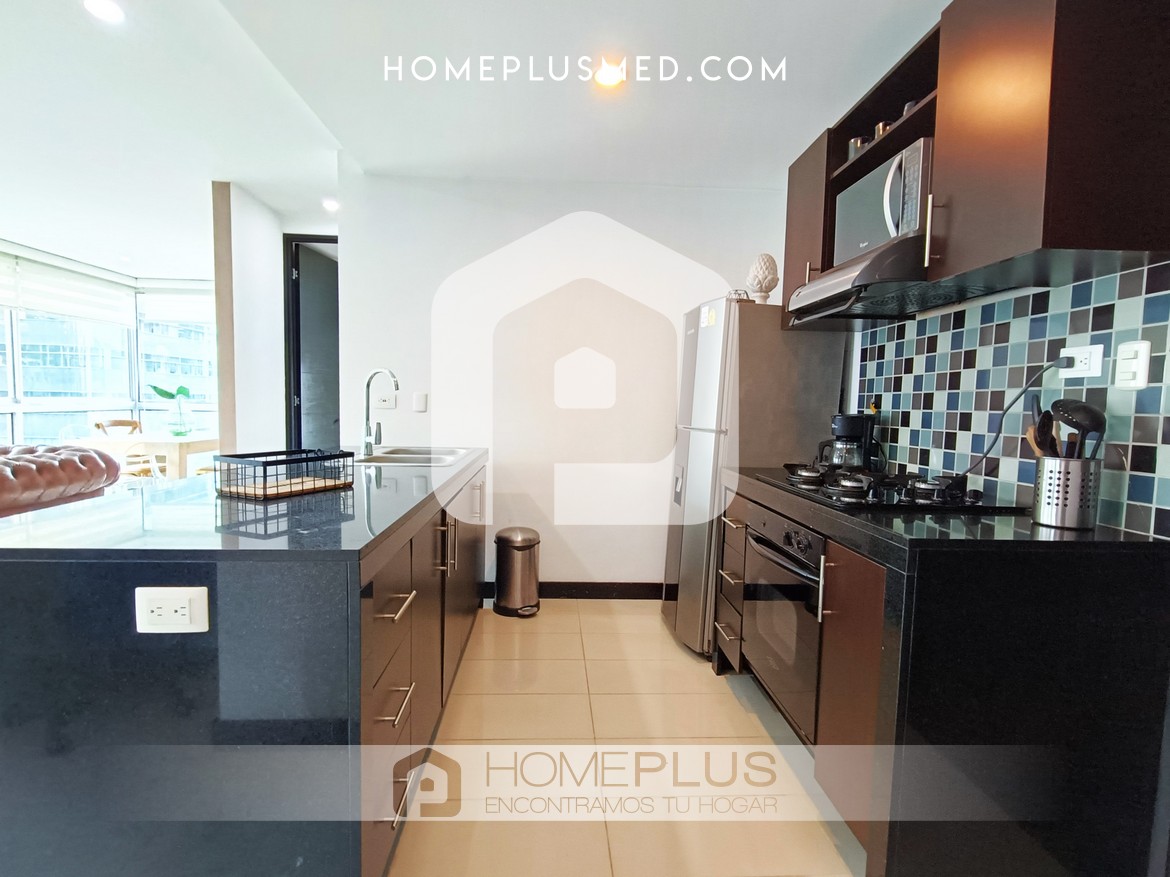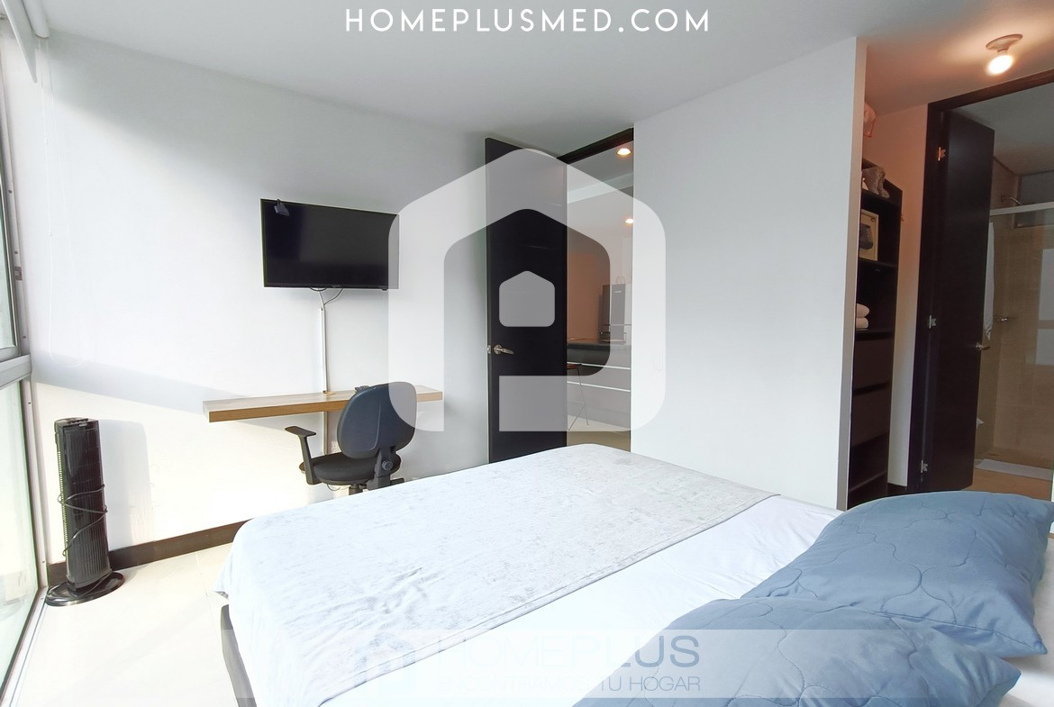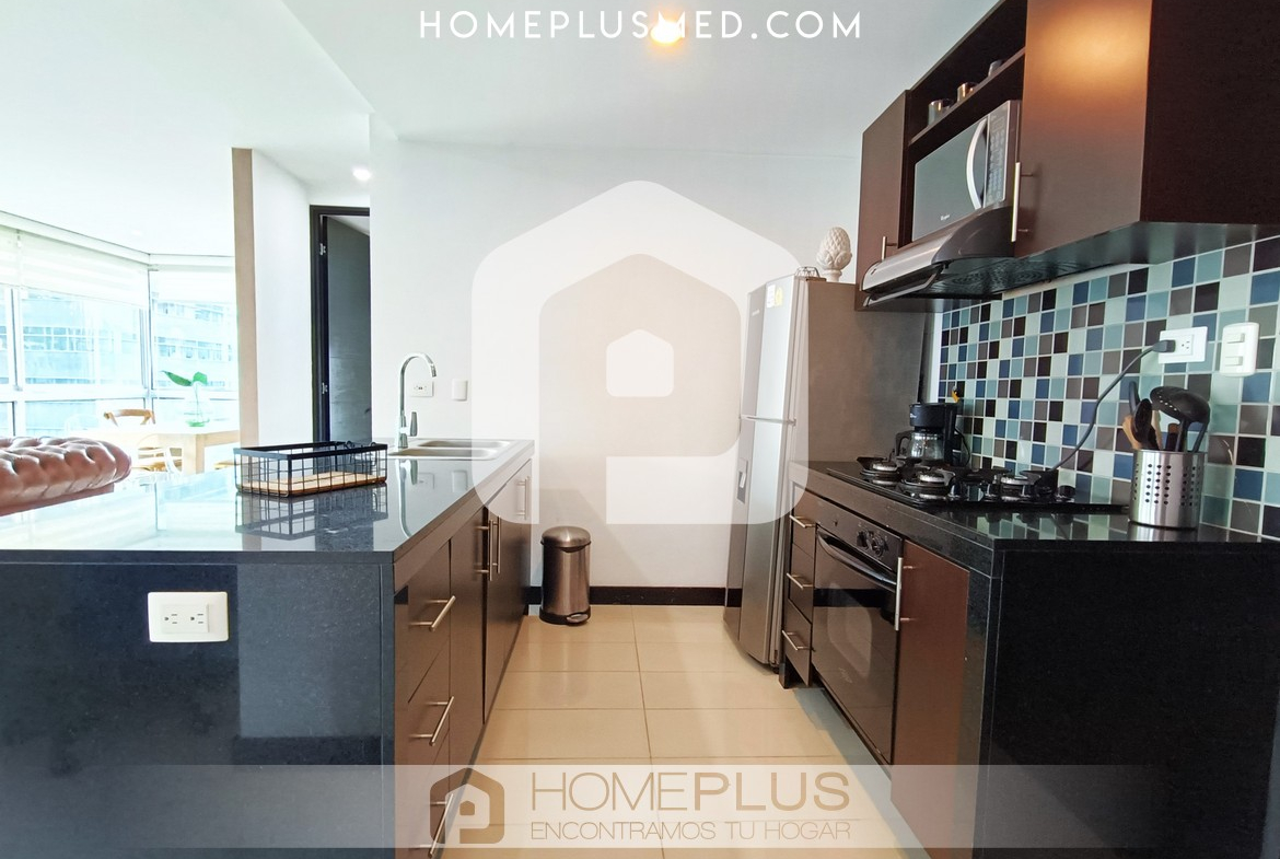 La distribución incluye dos habitaciones: la principal con baño privado y walking closet, y la segunda habitación con closet empotrado y fácil acceso al baño social. El apartamento ofrece excelente ventilación, luz natural, Wi-Fi de alta velocidad, y un parqueadero privado para mayor comodidad.