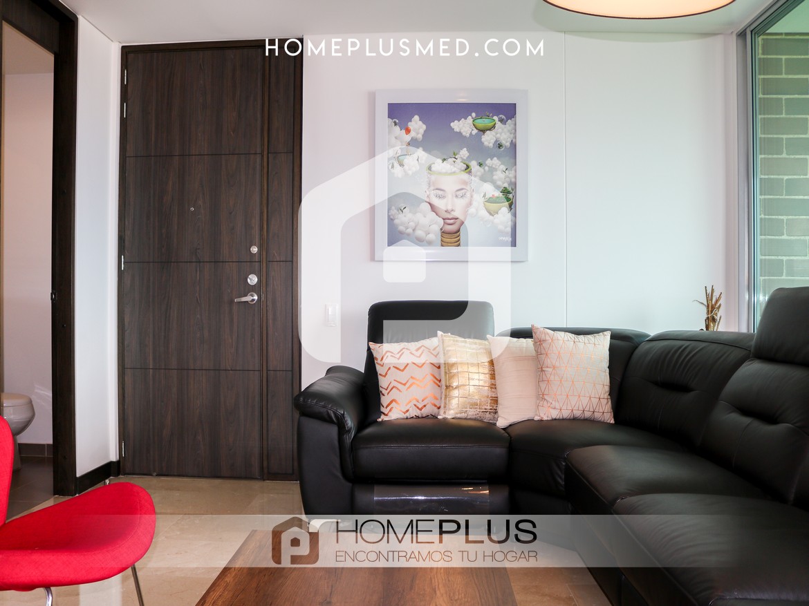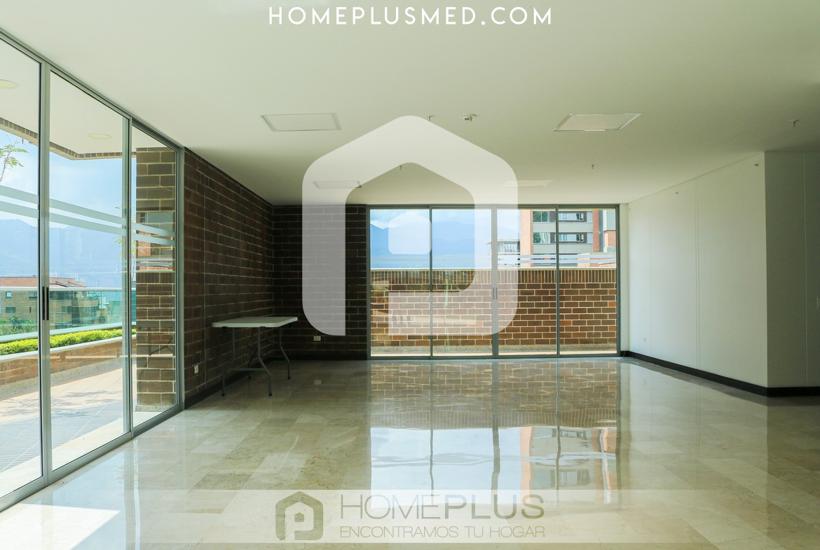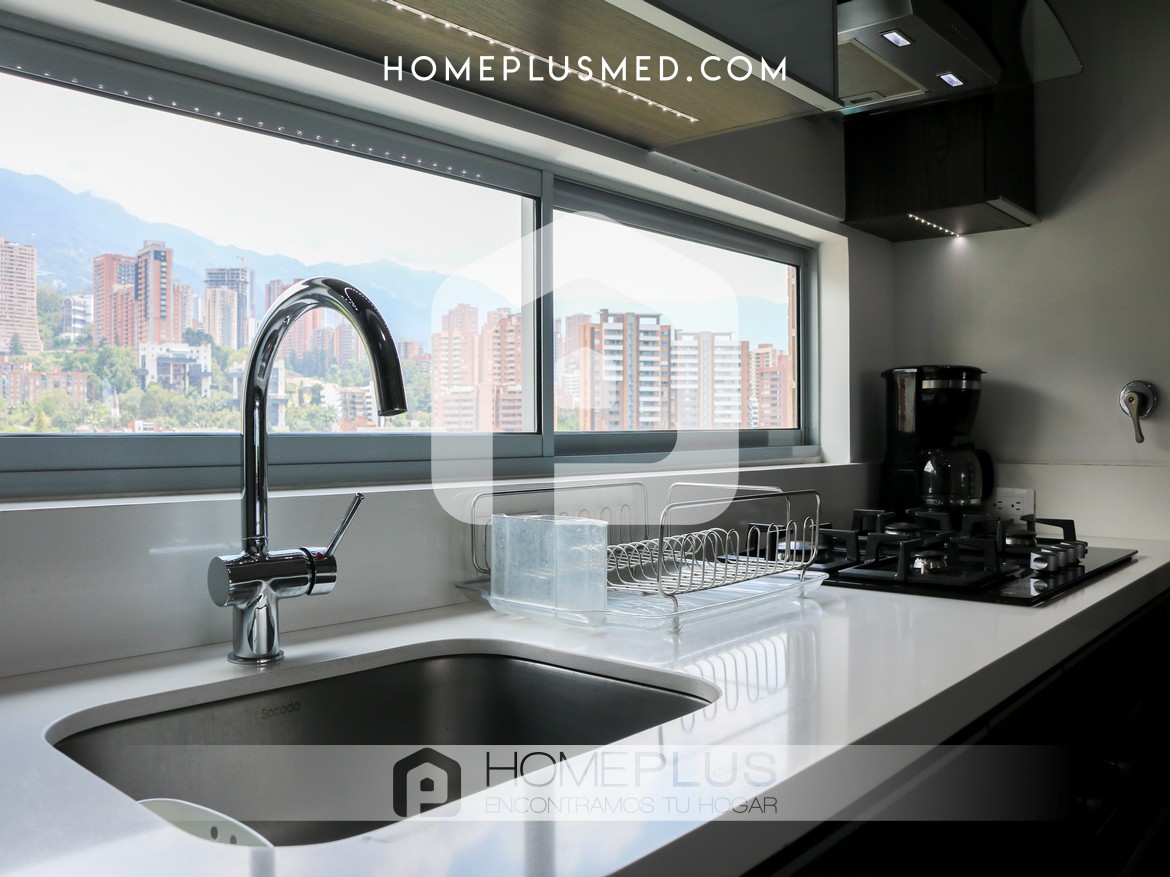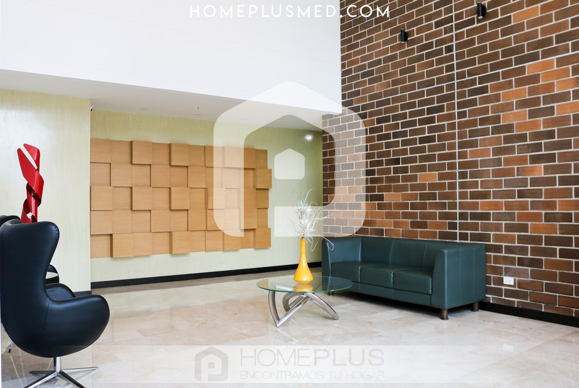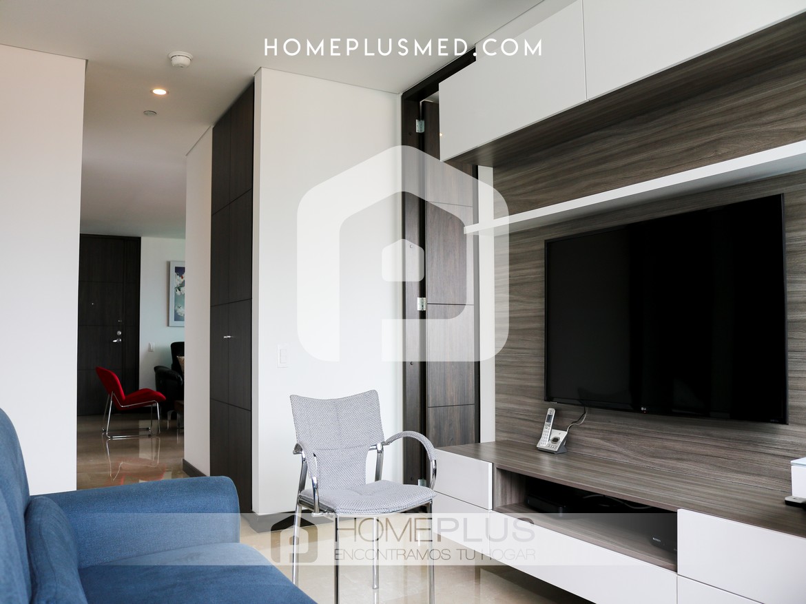 El apartamento cuenta con una sala de estar espaciosa que se conecta con un balcón de vista panorámica, ideal para relajarse o disfrutar del clima de Medellín. La cocina abierta está completamente equipada y se complementa con un comedor de 6 puestos, ofreciendo un ambiente acogedor para compartir en familia o con amigos. La propiedad incluye una zona de lavandería, hall de alcobas, sala de estar con centro de entretenimiento y un espacio de trabajo o estudio.