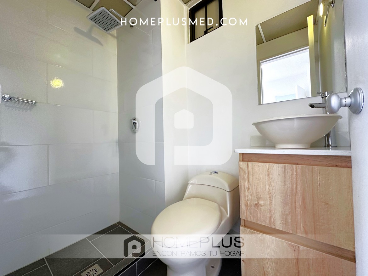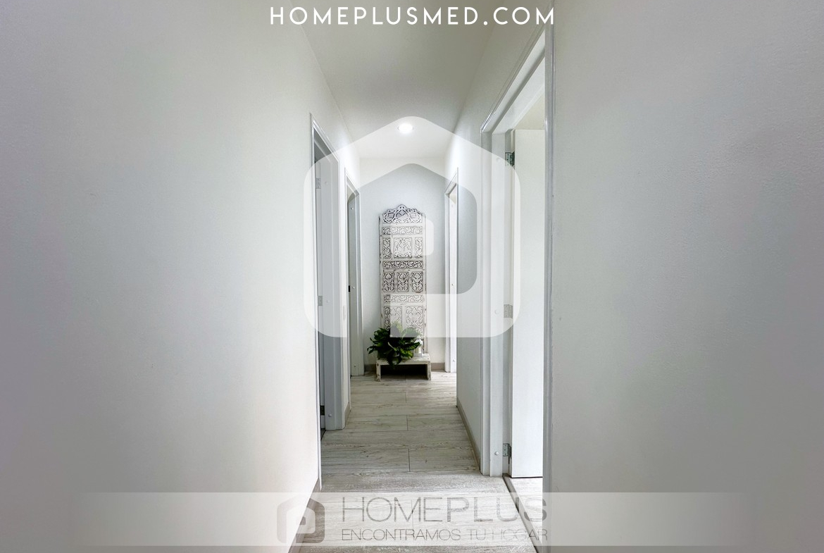 El hall de alcobas distribuye las tres habitaciones del apartamento. Las habitaciones 1 y 2 disponen de armarios, mientras que la habitación principal cuenta con baño privado, un amplio walking closet y acceso a un segundo balcón. Además, el apartamento tiene un baño adicional para uso compartido.