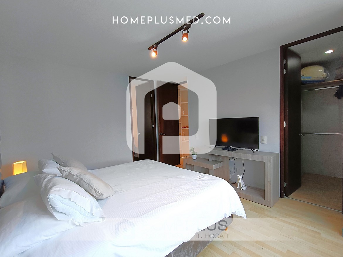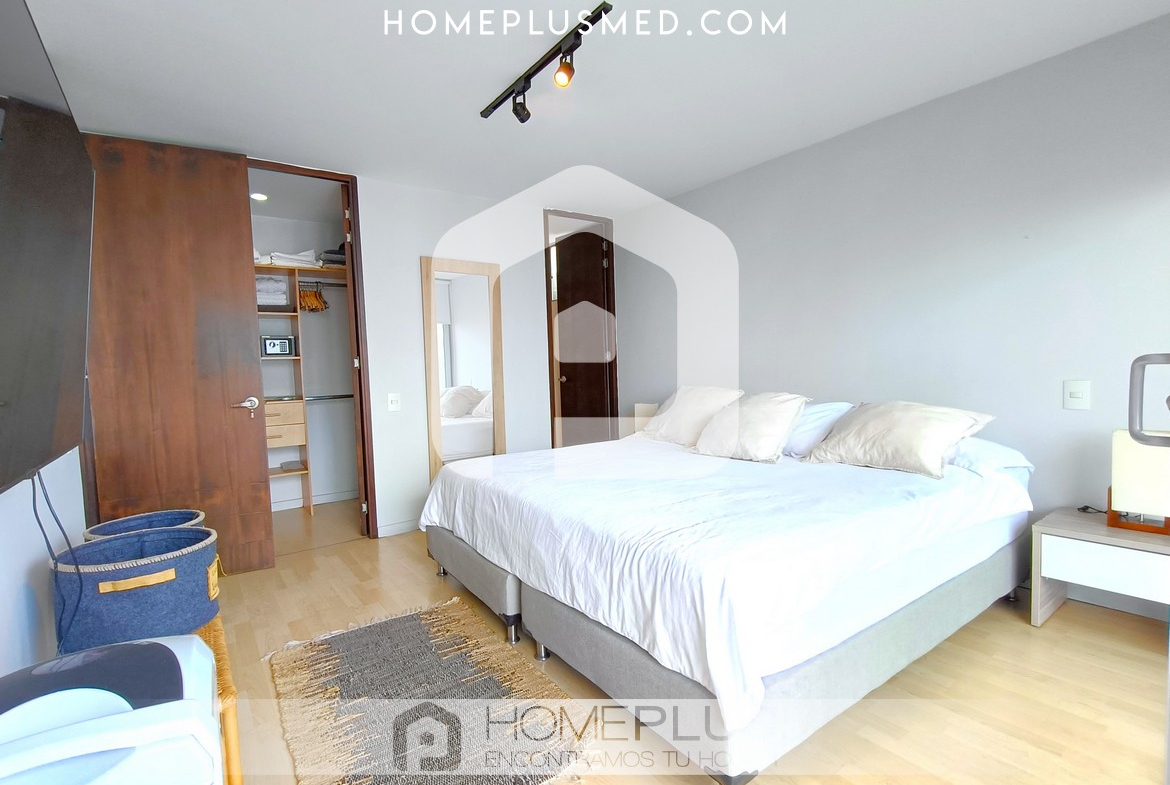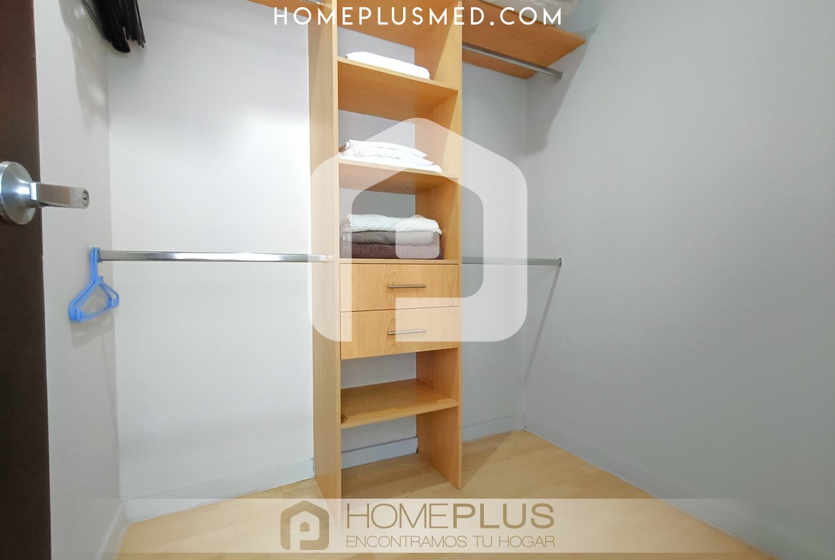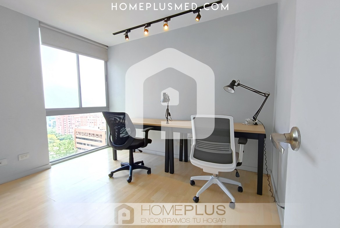 El apartamento tiene dos habitaciones principales, cada una con Smart TV, baño privado y walking closet, además de aire acondicionado portátil. Una de las habitaciones tiene acceso directo al balcón, lo que aporta aún más comodidad y lujo. Además, dispone de un estudio independiente o zona de trabajo, lo que facilita la productividad desde casa. También incluye un baño social para mayor comodidad y un parqueadero privado. La excelente ventilación e iluminación natural en todo el apartamento crean un ambiente agradable y cálido.