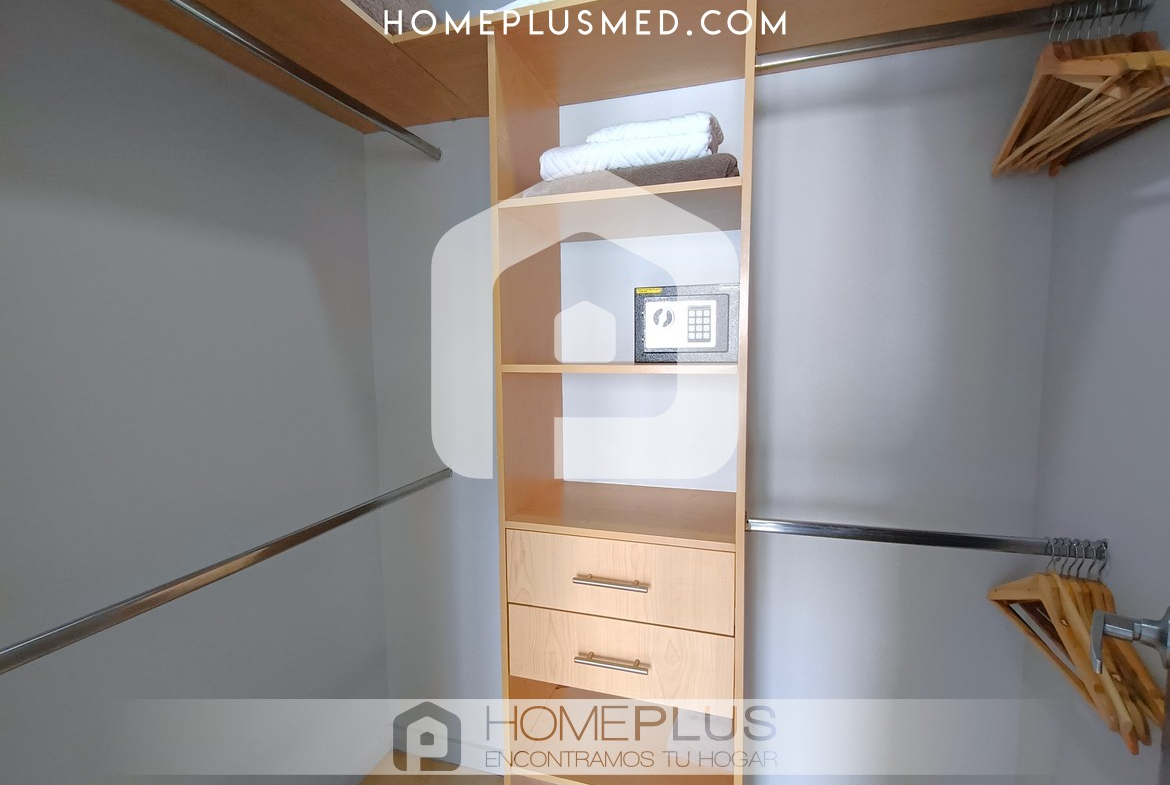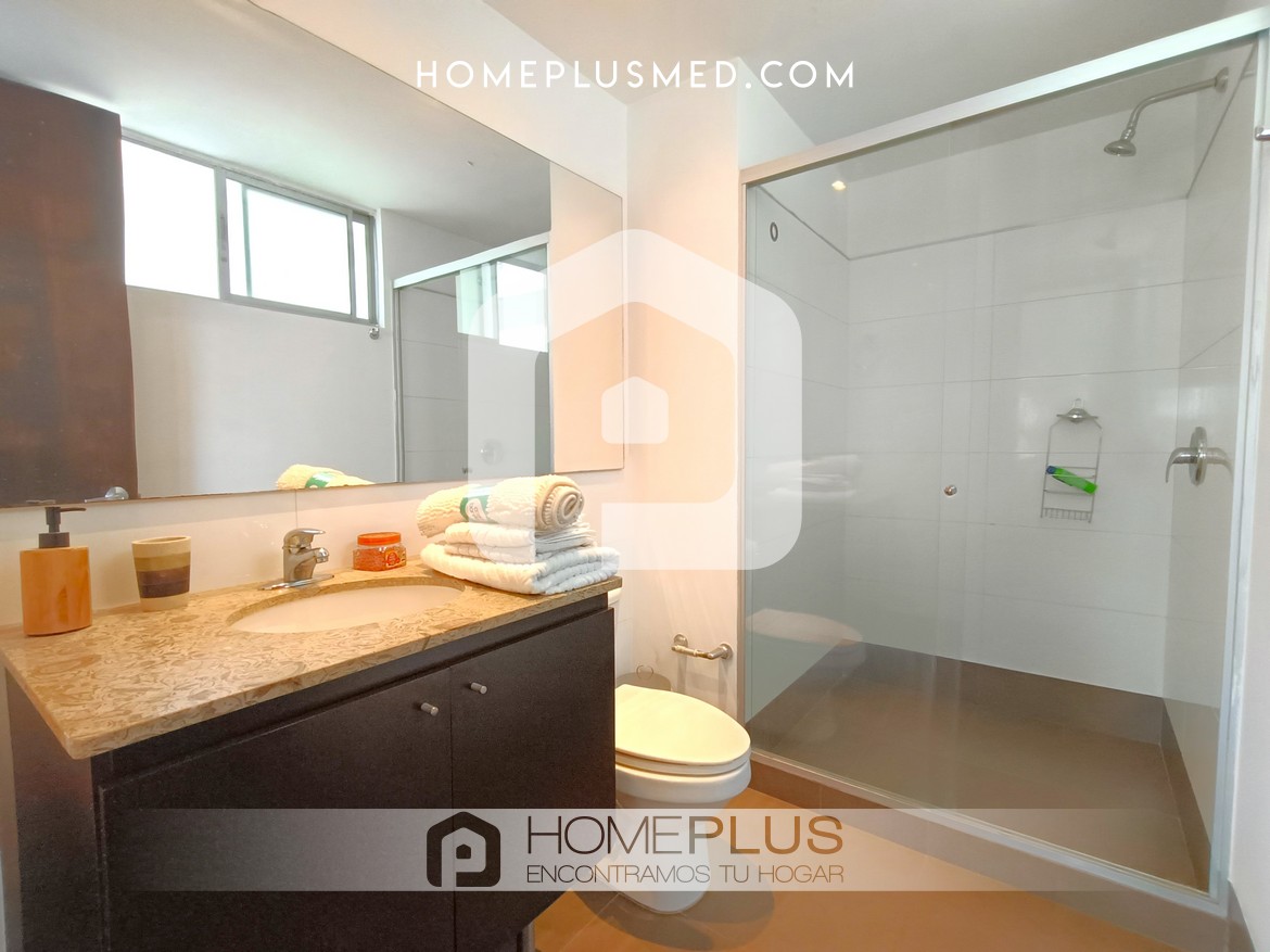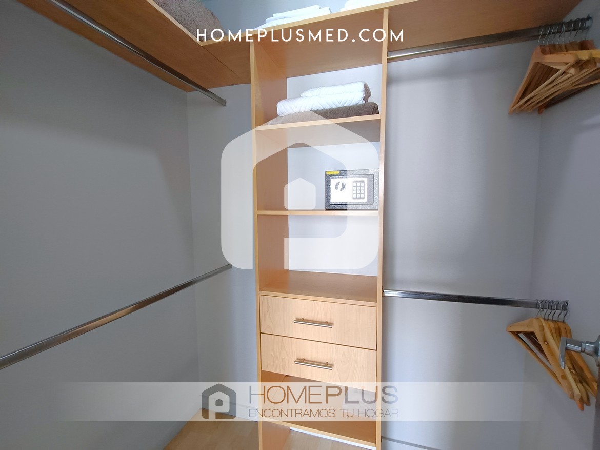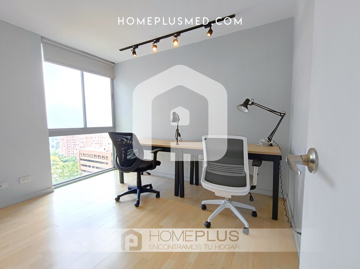 El apartamento tiene dos habitaciones principales, cada una con Smart TV, baño privado y walking closet, además de aire acondicionado portátil. Una de las habitaciones tiene acceso directo al balcón, lo que aporta aún más comodidad y lujo. Además, dispone de un estudio independiente o zona de trabajo, lo que facilita la productividad desde casa. También incluye un baño social para mayor comodidad y un parqueadero privado. La excelente ventilación e iluminación natural en todo el apartamento crean un ambiente agradable y cálido.