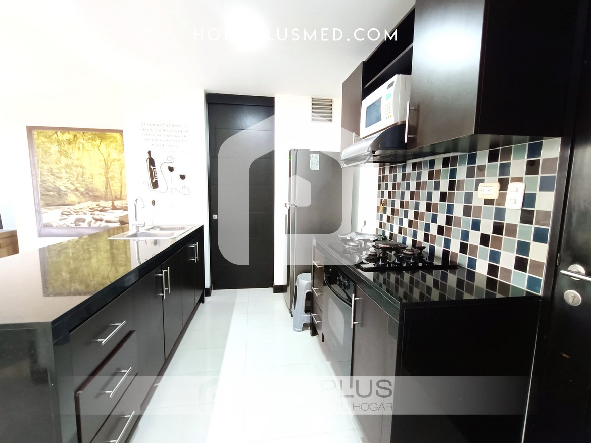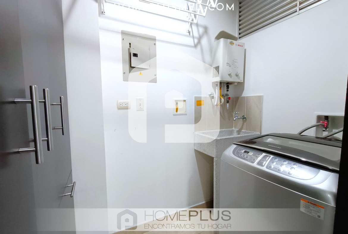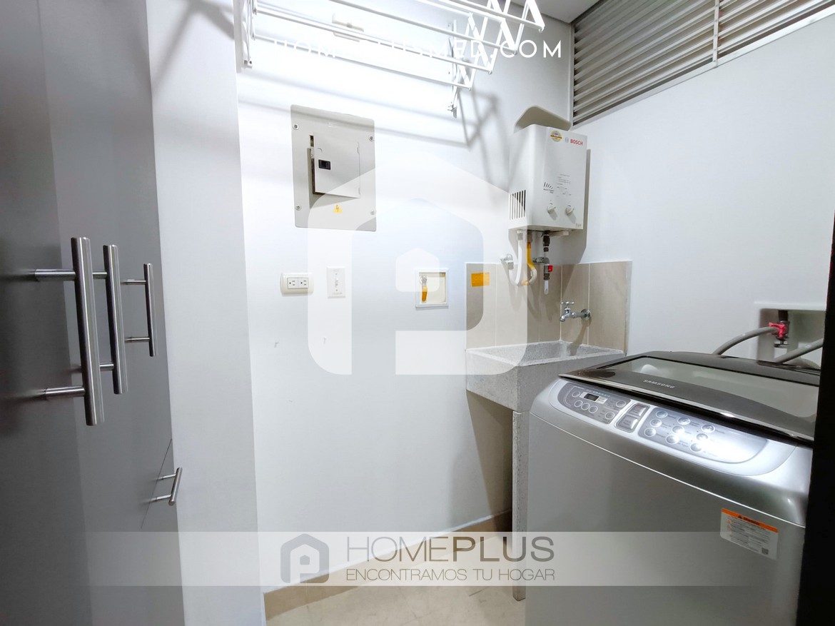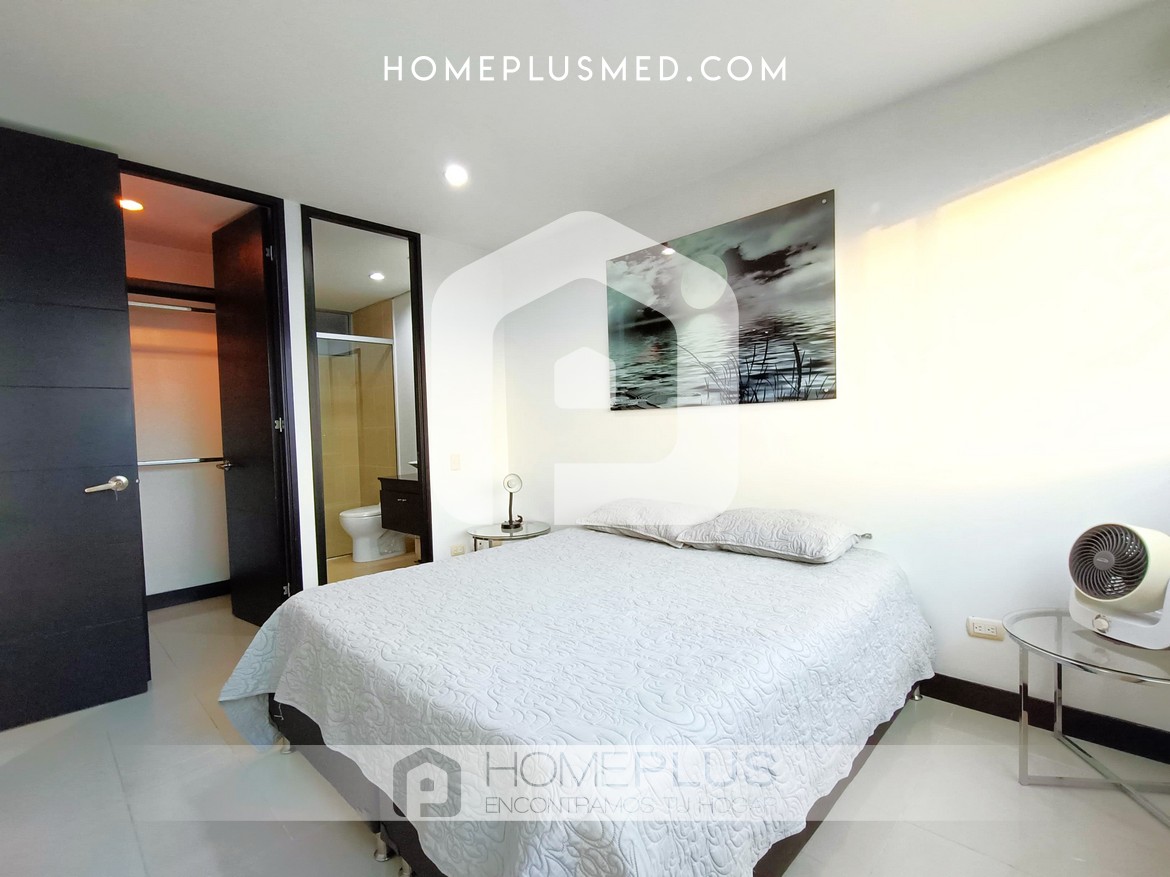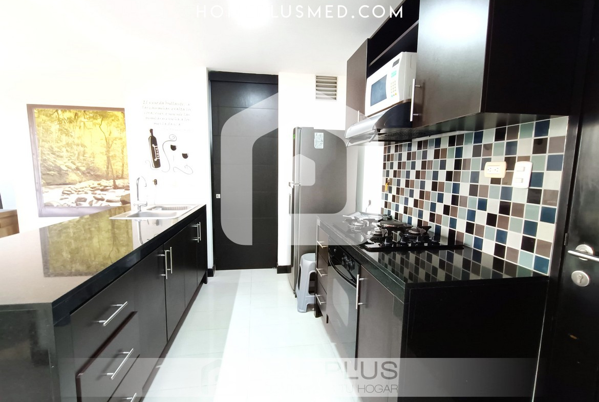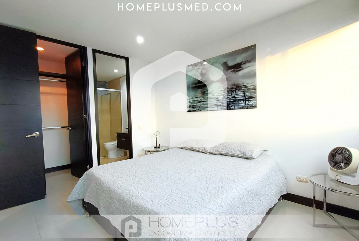 El apartamento cuenta con una cocina abierta completamente equipada, perfecta para preparar tus comidas favoritas. La sala de estar es un espacio acogedor con una zona de trabajo para quienes necesitan un lugar funcional durante su estancia. La habitación principal dispone de un baño en suite y un amplio walking closet, garantizando privacidad y confort. Además, el apartamento ofrece una excelente ventilación y luz natural, creando un ambiente luminoso y acogedor. Adicionalmente, cuenta con un baño social, una zona de lavandería y un parqueadero privado.