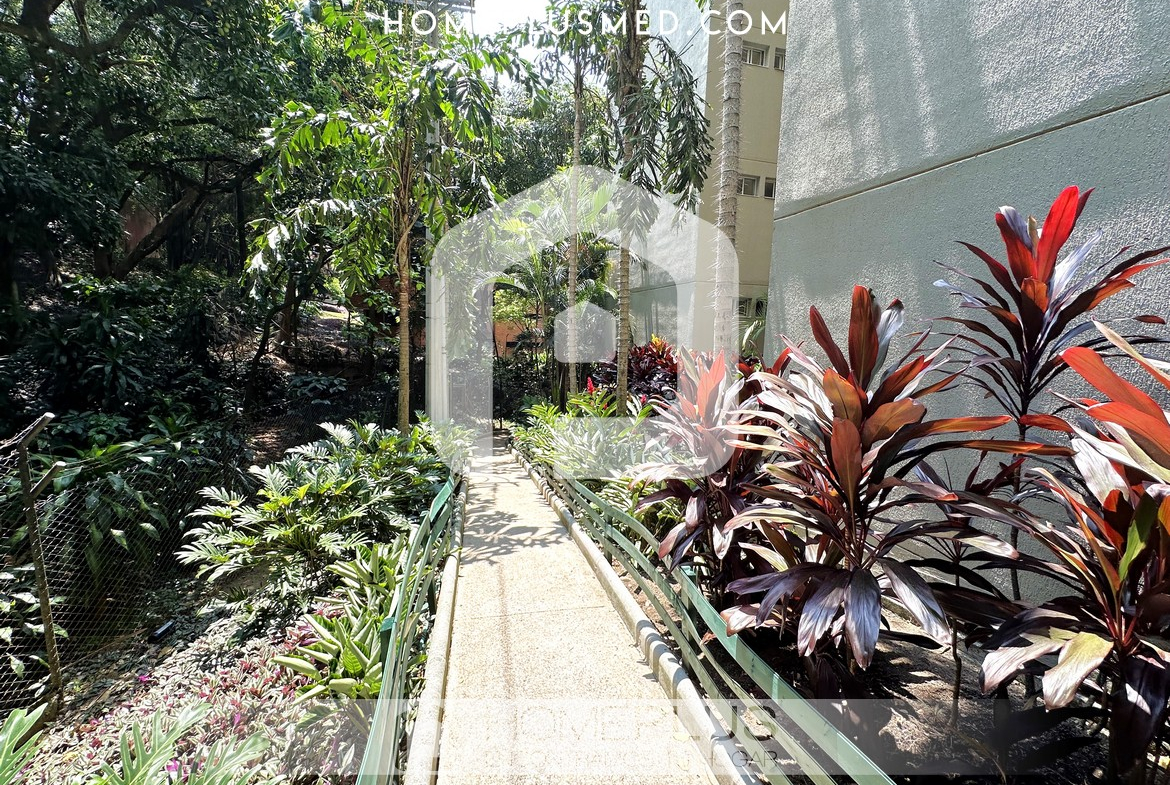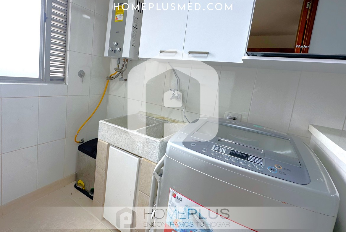 Este apartamento está diseñado para ofrecer un espacio acogedor con todas las comodidades necesarias. Dispone de dos amplias habitaciones; la principal cuenta con un baño privado y closet, mientras que la habitación secundaria incluye un televisor y closet, ideal para visitas o niños. Además, cuenta con una habitación de servicio con baño privado. La sala de estar es perfecta para el entretenimiento, equipada con un Smart TV y un cómodo sofá cama, y el comedor conecta con un balcón que ofrece una buena vista, complementado con una mesa auxiliar. La cocina está completamente equipada y cuenta con una zona de lavandería. El apartamento también cuenta con excelente ventilación e iluminación natural, brindando un ambiente cálido y confortable. Incluye un parqueadero privado.