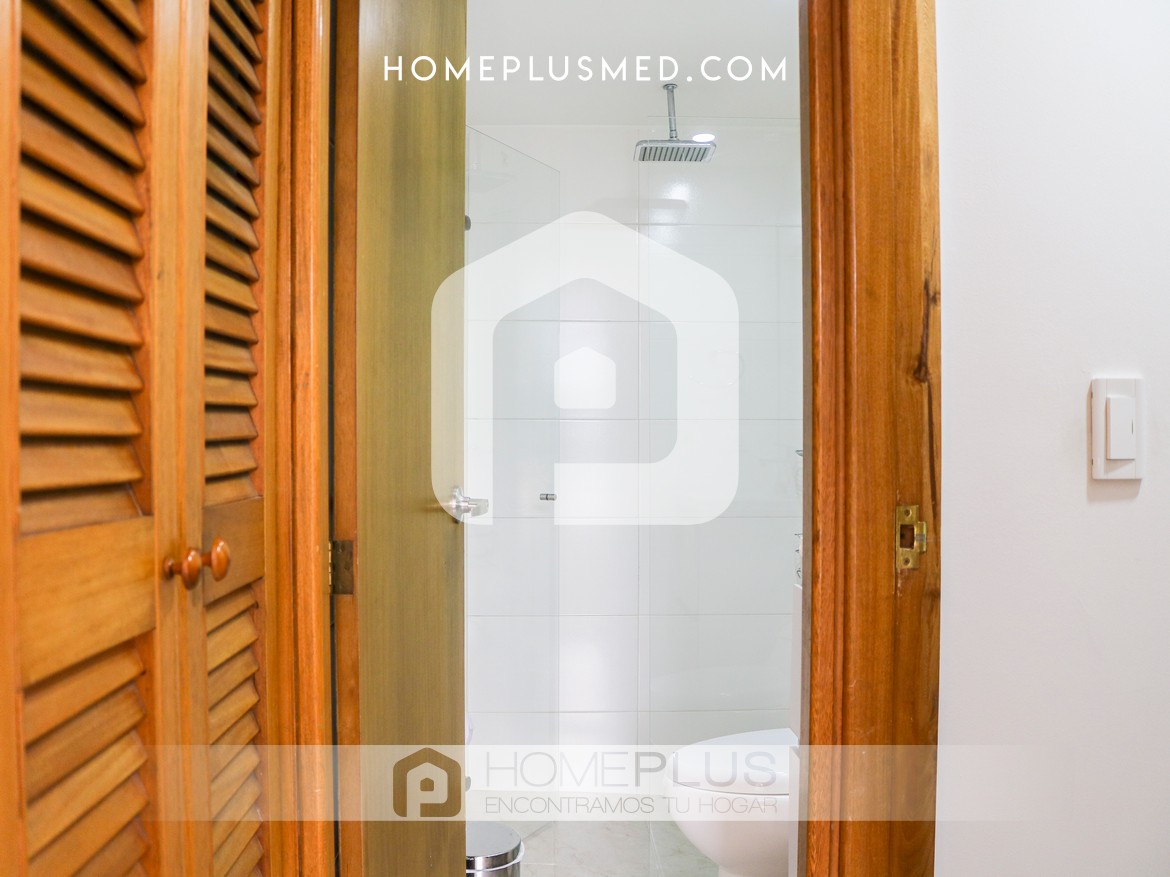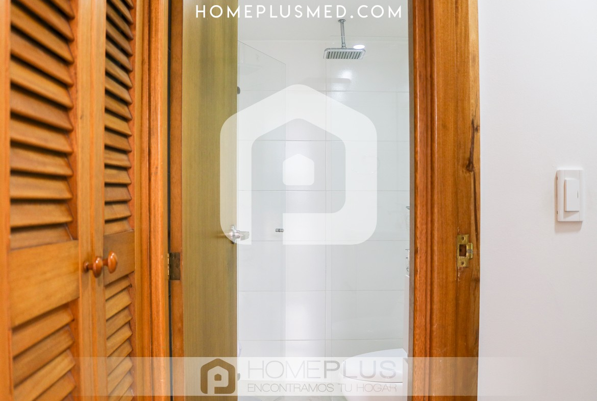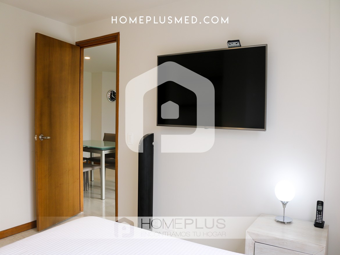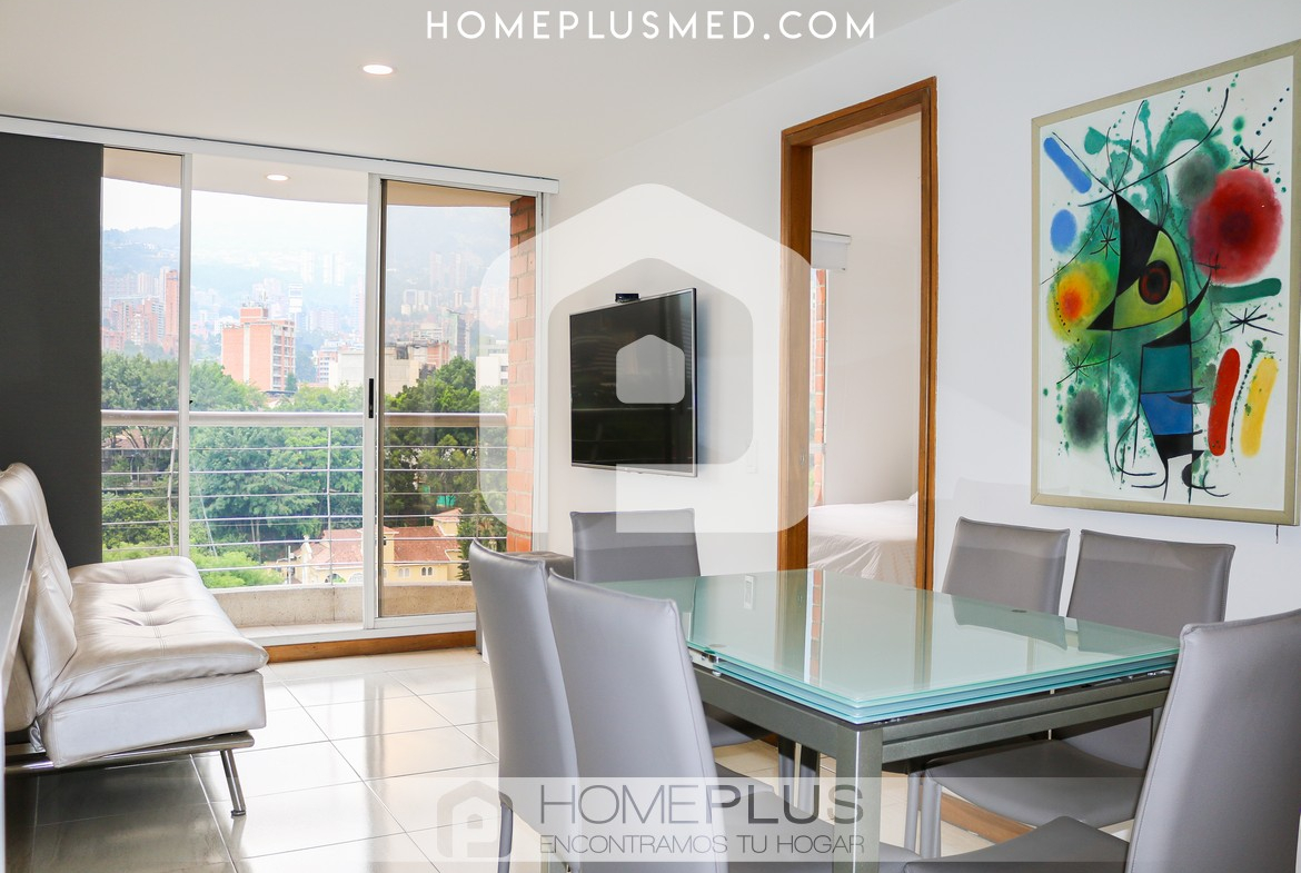 La propiedad ofrece una sala de estar cómoda que se integra con un comedor de 4 puestos, creando un ambiente perfecto para relajarse o recibir visitas. El balcón, accesible desde la sala, proporciona una vista agradable y un espacio adicional para disfrutar al aire libre. La cocina abierta, completamente equipada, se conecta de manera armónica con el resto del apartamento, y la zona de lavandería se encuentra convenientemente ubicada para mayor practicidad. La habitación principal cuenta con un baño privado y un walking closet, asegurando privacidad y confort. Además, el apartamento dispone de un baño social, wifi y un parqueadero privado.