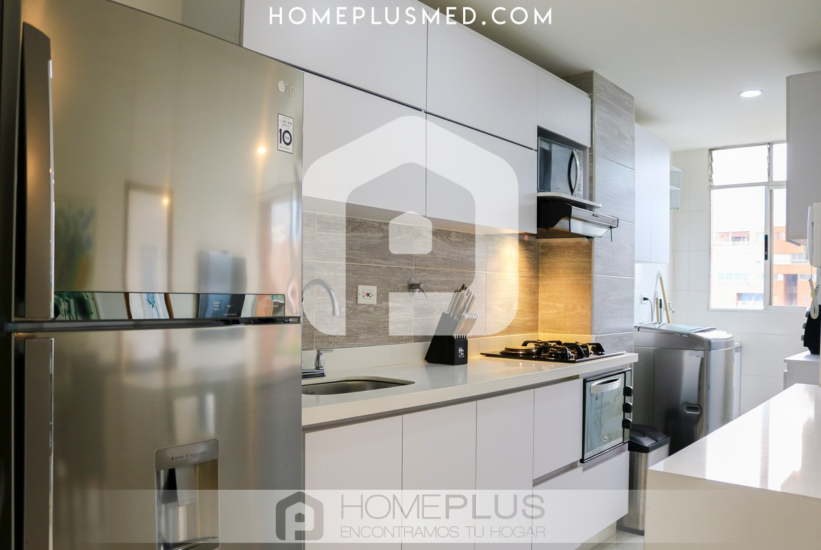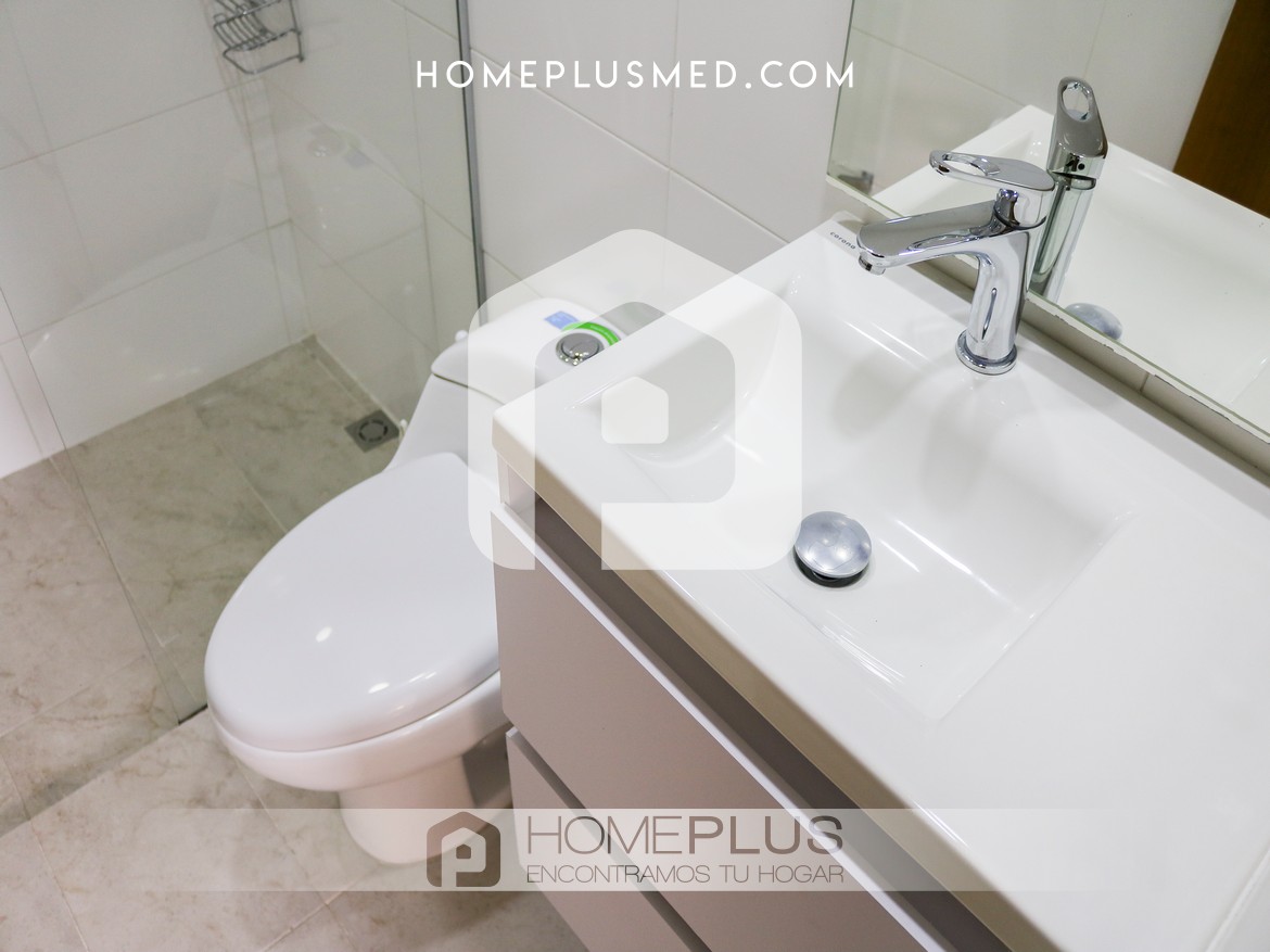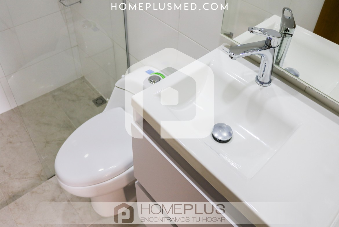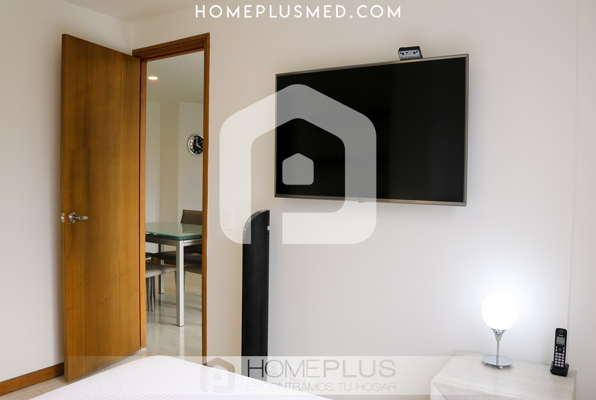 La propiedad ofrece una sala de estar cómoda que se integra con un comedor de 4 puestos, creando un ambiente perfecto para relajarse o recibir visitas. El balcón, accesible desde la sala, proporciona una vista agradable y un espacio adicional para disfrutar al aire libre. La cocina abierta, completamente equipada, se conecta de manera armónica con el resto del apartamento, y la zona de lavandería se encuentra convenientemente ubicada para mayor practicidad. La habitación principal cuenta con un baño privado y un walking closet, asegurando privacidad y confort. Además, el apartamento dispone de un baño social, wifi y un parqueadero privado.