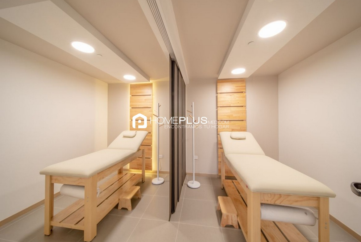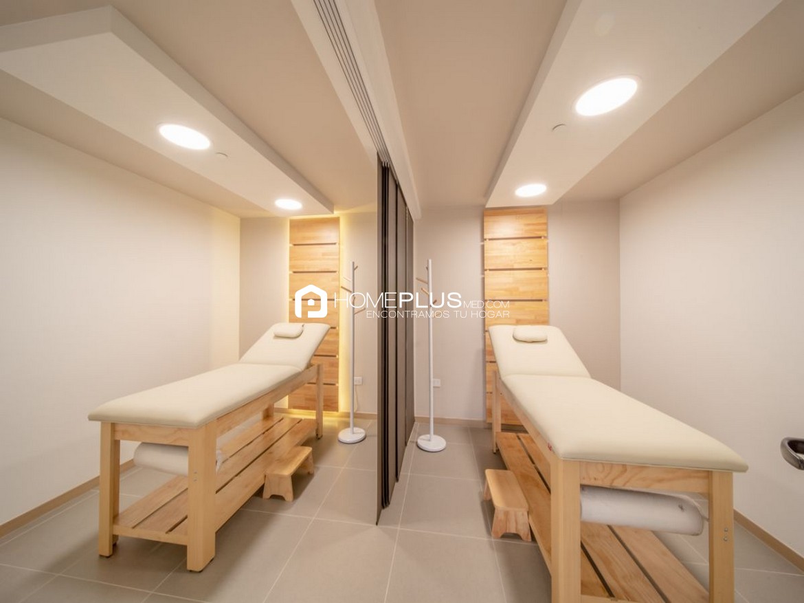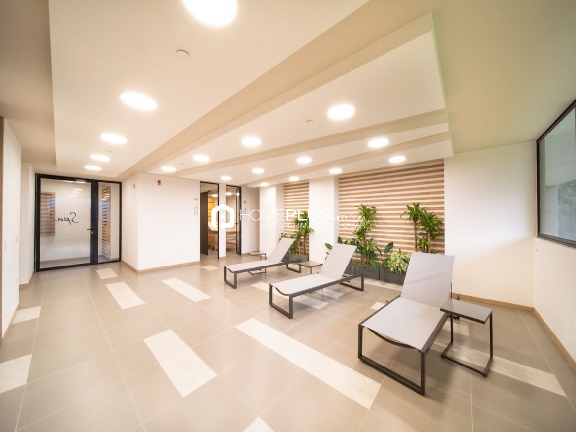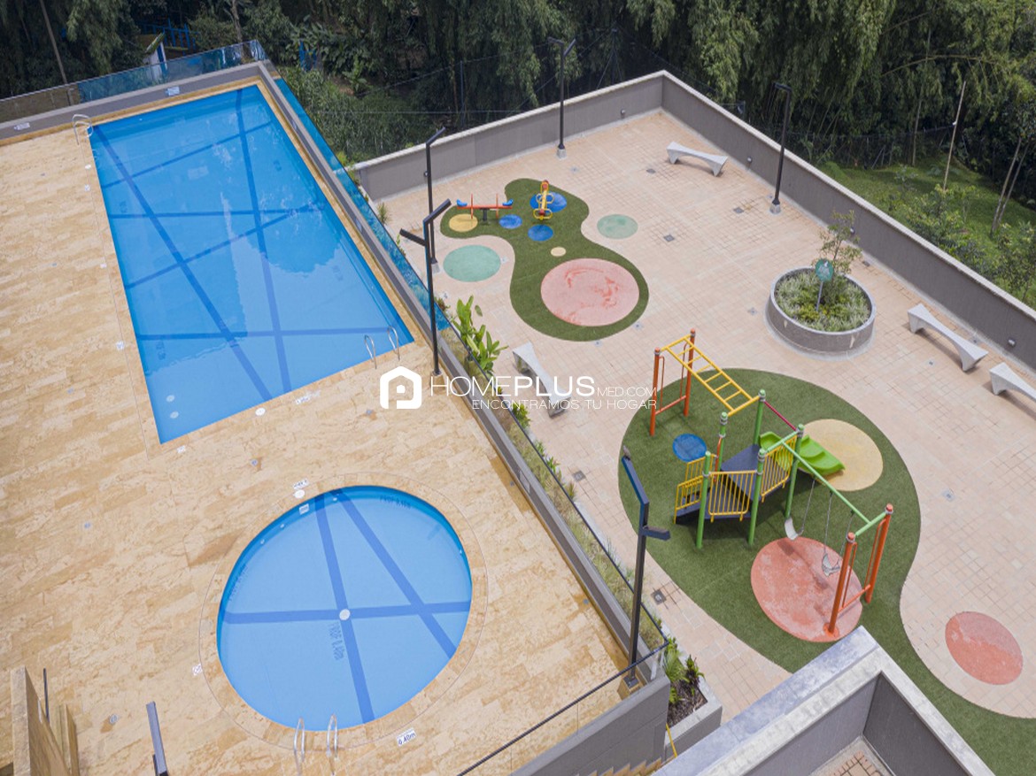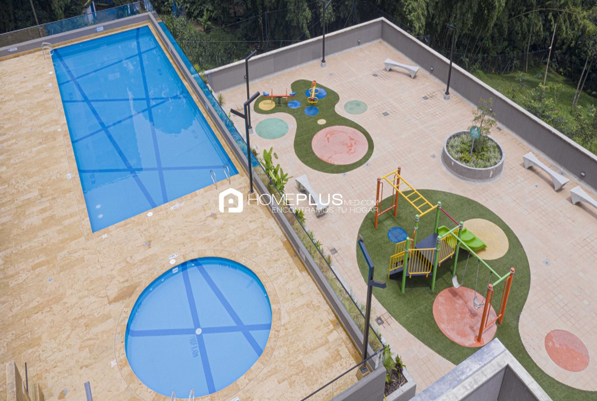 El conjunto residencial ofrece múltiples espacios para el disfrute y el bienestar: piscina para adultos y niños, sauna, turco, jacuzzi, gimnasio, salón de spinning, cancha de squash, cancha de fútbol sintética, salón de masajes, salón social y salón lounge. También cuenta con senderos verdes, zona de mascotas, juegos infantiles, terrazas, shut de basuras, ascensor, parqueadero de visitantes y vigilancia 24/7.