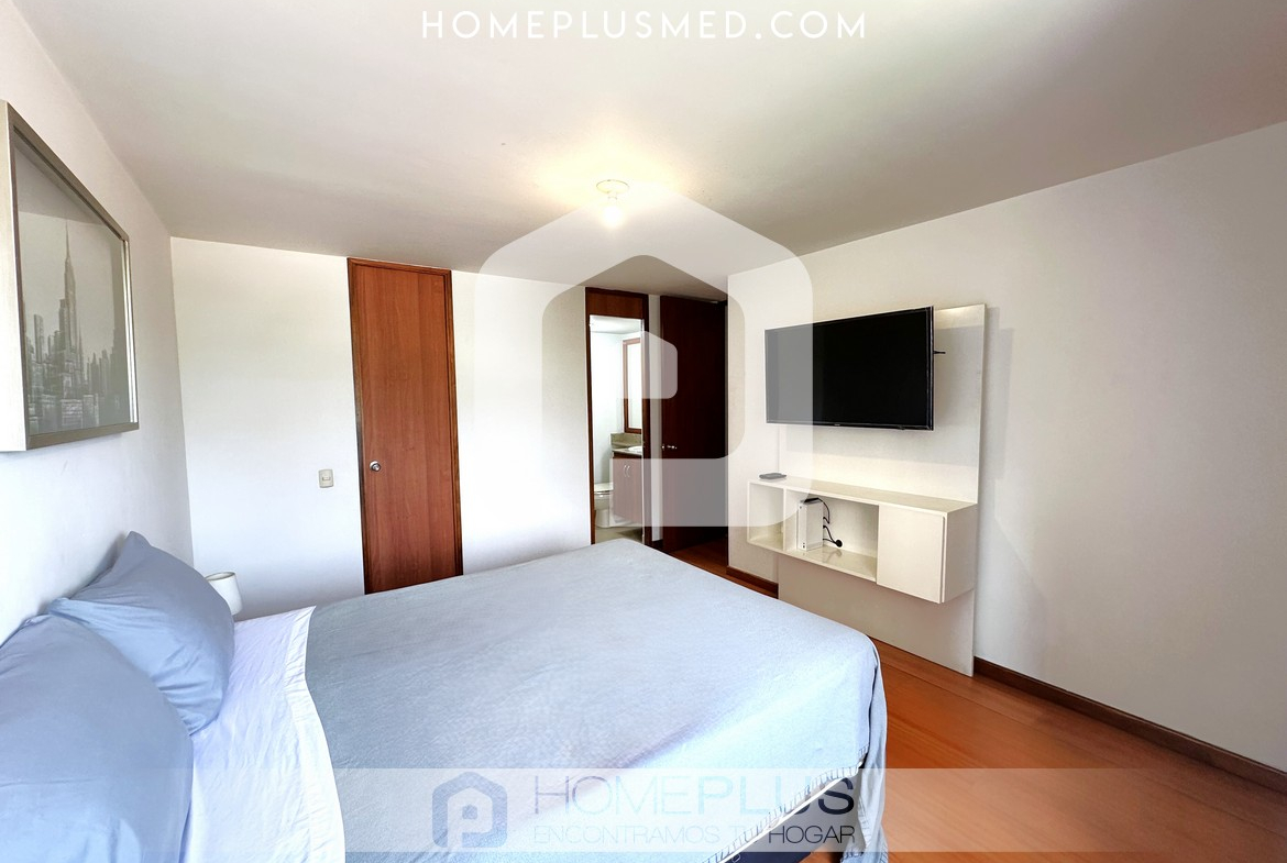 El apartamento cuenta con tres habitaciones, cada una diseñada para el máximo confort. La habitación principal dispone de baño privado y closet, mientras que la segunda habitación también ofrece un baño privado. La tercera habitación es cómoda y cuenta con un amplio closet. Hay un baño social completo que da servicio a la zona común. La propiedad incluye una moderna cocina equipada, zona de lavandería independiente, sala de estar amplia y un comedor con capacidad para cuatro personas. El hall de alcobas y el closet de linos son detalles adicionales que aportan funcionalidad. Además, el apartamento cuenta con zona de estudio, Wi-Fi y un parqueadero privado.