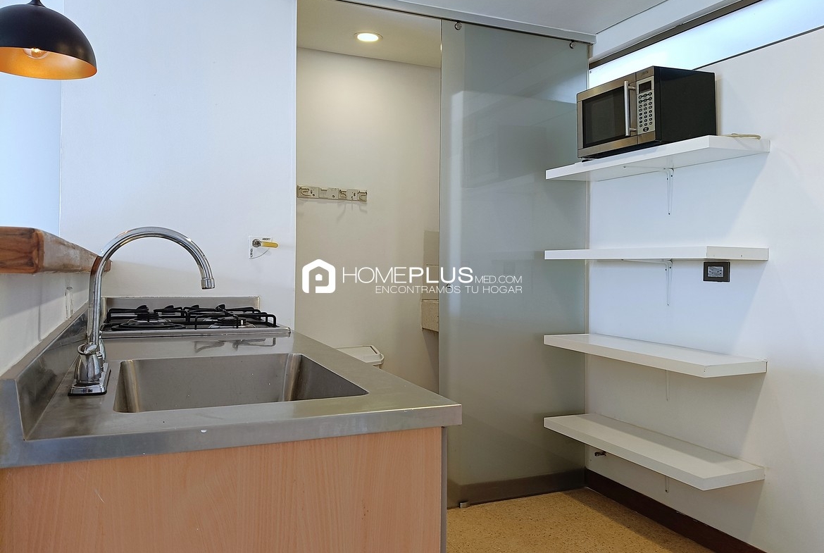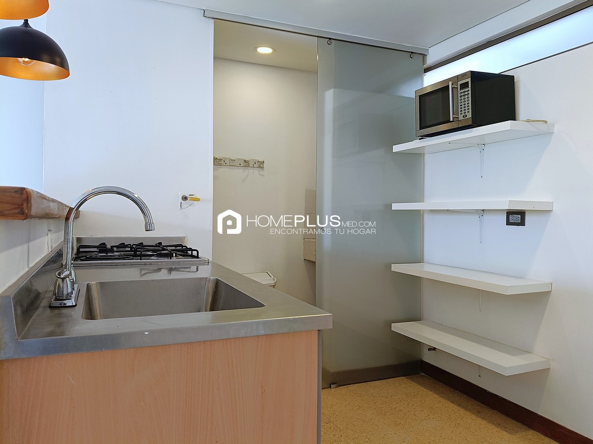 Este apartamento en alquiler en El Poblado, sector Patio Bonito, cuenta con 41 m² inteligentemente distribuidos. Su diseño moderno, la excelente vista desde el balcón y la cercanía a vías principales lo convierten en una opción ideal para quienes buscan vivienda en Medellín práctica, segura y con ubicación estratégica.