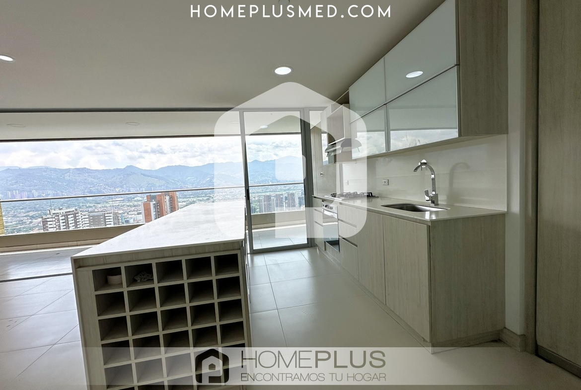 El apartamento cuenta con 3 habitaciones principales, cada una con su baño completo, además de una alcoba de empleada con baño y un espacio adicional que puede utilizarse como estudio o zona de trabajo. La cocina es abierta y moderna, conectada a una amplia sala que se extiende hacia un balcón con una impresionante vista panorámica. Este inmueble también dispone de un closet de linos, una alacena y un cuarto útil. La luz natural abunda gracias a las ventanas bien distribuidas, lo que asegura una excelente ventilación en todo el apartamento. El parqueadero es doble y privado, ofreciendo aún más comodidad para los residentes.