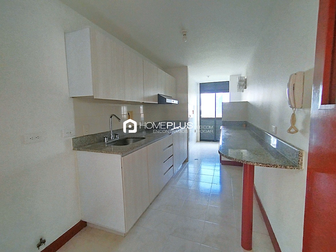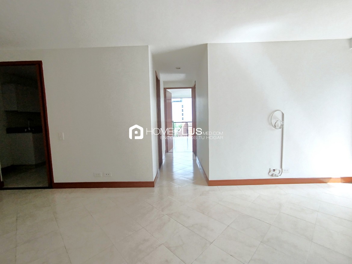 Con 75 m², este apartamento cuenta con dos habitaciones, la primera habitación cuenta con closet empotrado, mientras que la habitación principal incluye un baño privado, walking closet y acceso a un balcón con vista despejada. En el hall de alcobas cuenta con un baño social completo, Dispone de una alcoba de servicio con baño, zona de ropas, cocina integral y una amplia sala de estar con excelente iluminación natural y ventilación. Además, cuenta con un parqueadero privado.