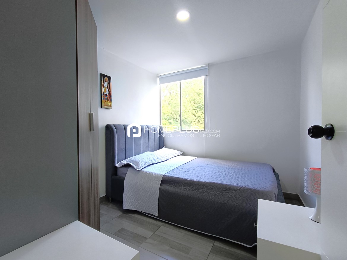 En el área privada se encuentra un hall de alcobas, un baño social completo, una habitación auxiliar con clóset y una habitación principal con baño privado y clóset amplio. Además, el apartamento incluye parqueadero cubierto privado para mayor comodidad.