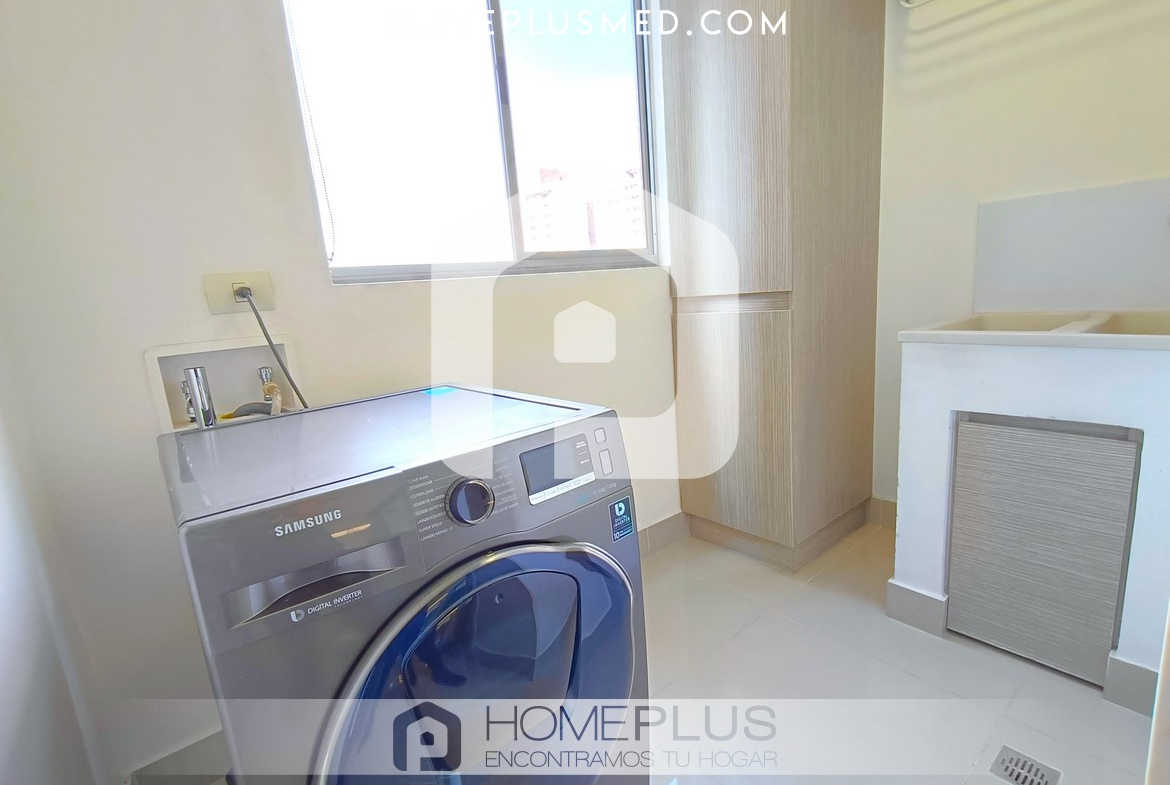 Este apartamento ofrece una amplia sala de estar conectada a un balcón con vistas excepcionales, ideal para disfrutar de la tranquilidad o compartir con amigos y familiares en un espacio para comedor auxiliar al aire libre. Su cocina moderna y abierta con barra americana combina funcionalidad y estilo, mientras que la zona de lavandería independiente brinda mayor comodidad.