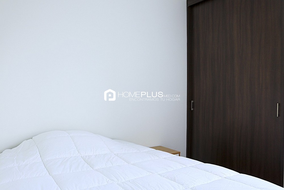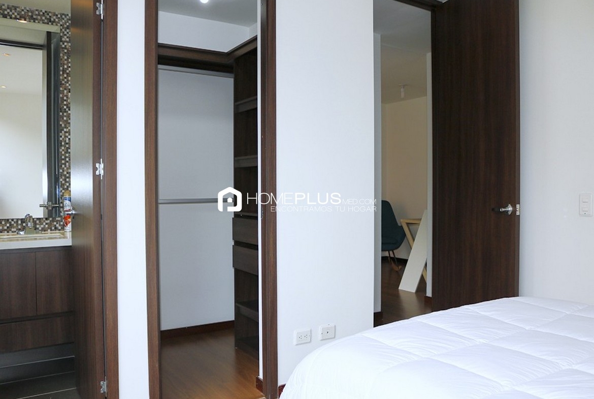 Por otra parte, la cocina es abierta, funcional y con buen espacio de almacenamiento. Tiene acceso a una zona de ropas independiente y a una terraza privada con vista despejada. La habitación principal tiene capacidad para cama Queen Size, incluye baño privado con cabina en vidrio templado y un walk-in closet. La segunda habitación también es amplia, con closet empotrado y fácil acceso al baño social completo.