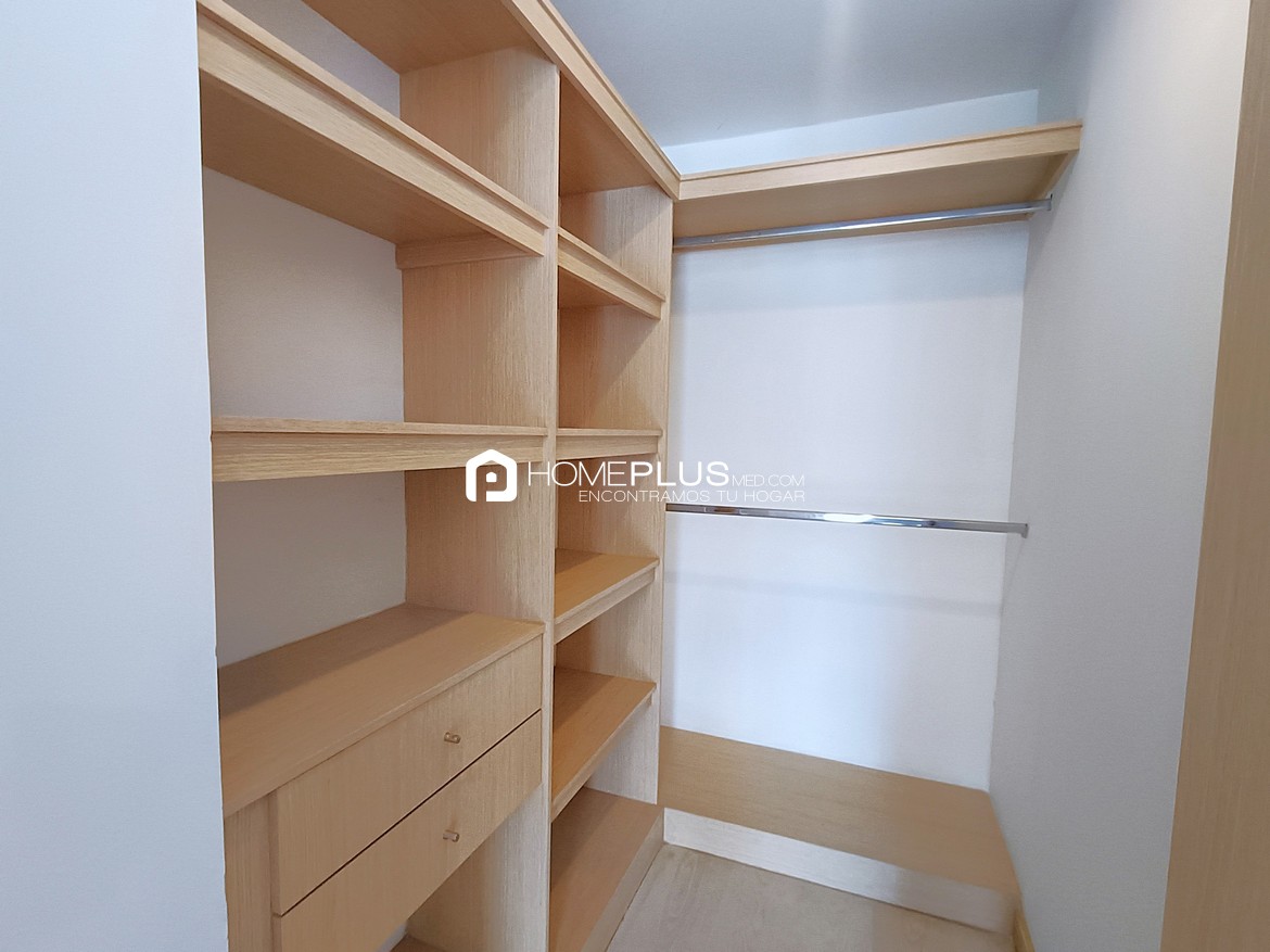 Además, la cocina abierta está equipada con múltiples cajones y gabinetes para almacenamiento. Se integra armónicamente con la zona de ropas, la cual goza de excelente ventilación natural, lo que facilita las tareas del hogar.