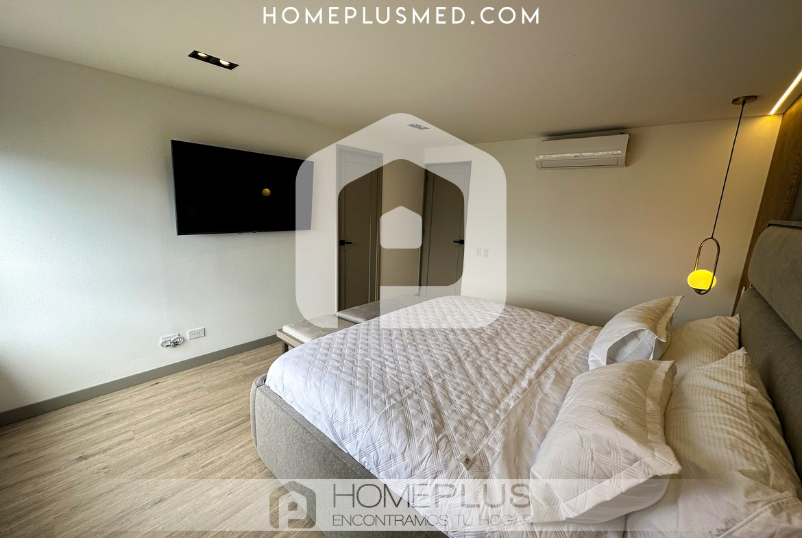 El dormitorio principal tiene una cama King Size de (2,00m x 2,00m), dos mesas de noche con lámparas flotantes, aire acondicionado, Smart TV, vestier y baño en suite con ducha. La segunda alcoba dispone de una cama Queen Size de (1,60m x 1,90m), dos mesas de noche con lámparas flotantes, aire acondicionado, Smart TV, closet empotrado y baño en suite con ducha. La tercera habitación tiene una cama Queen Size de (1,60m x 1,90m), dos mesas de noche, dos lámparas, aire acondicionado, Smart TV, vestier y baño en suite con ducha.